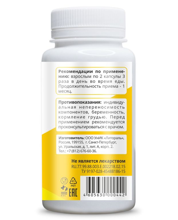 Состав: Клубни топинамбура, слоевище фукуса, слоевище ламинарии, семя льна, инулин, крахмал картофельный, кальция стеарат, лактоза.