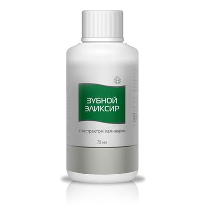 Зубной эликсир с экстрактом ламинарии эффективен для профилактики кариеса и снижения гиперчувствительности эмали; обладает прекрасным послевкусием и хорошо освежает дыхание.