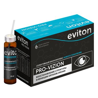 Eviton Pro-Vision - является специализированным природным средством в питьевой форме, разработанным для защиты зрительного анализатора, улучшения функции зрения и цветовосприятия. Содержит биоактивную вытяжку целебных растений Сибири и Восточной Азии, дополненные минеральными веществами.